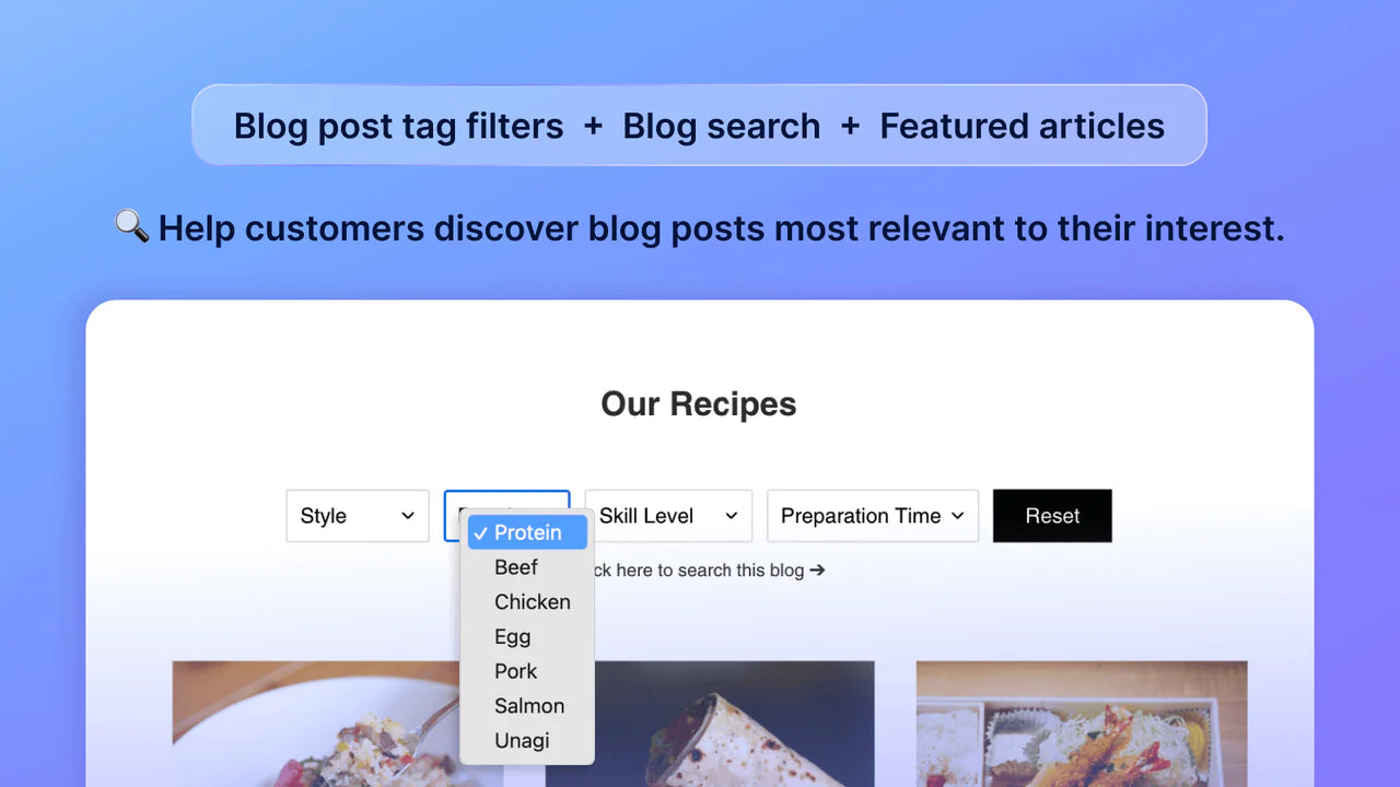 Use blog tag to flexibly configure blog filter that your customers can use to better discover your content